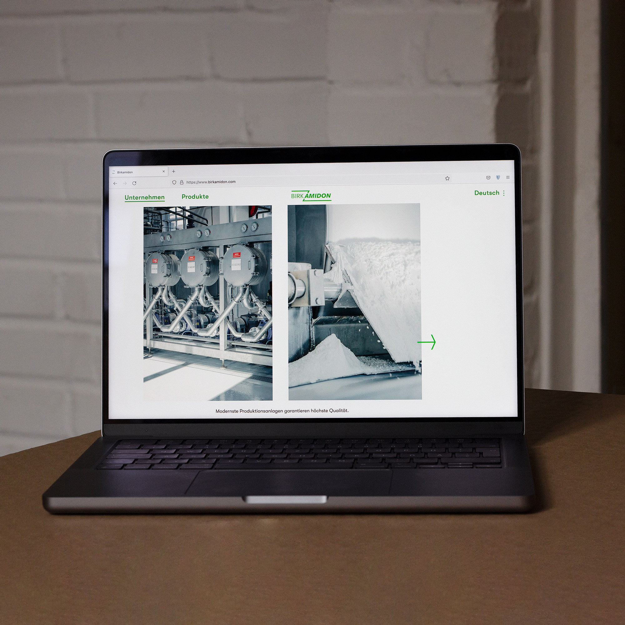 Contemporary and clear corporate website for Birkamidon, a wholesale company supplying raw materials for the food industry.