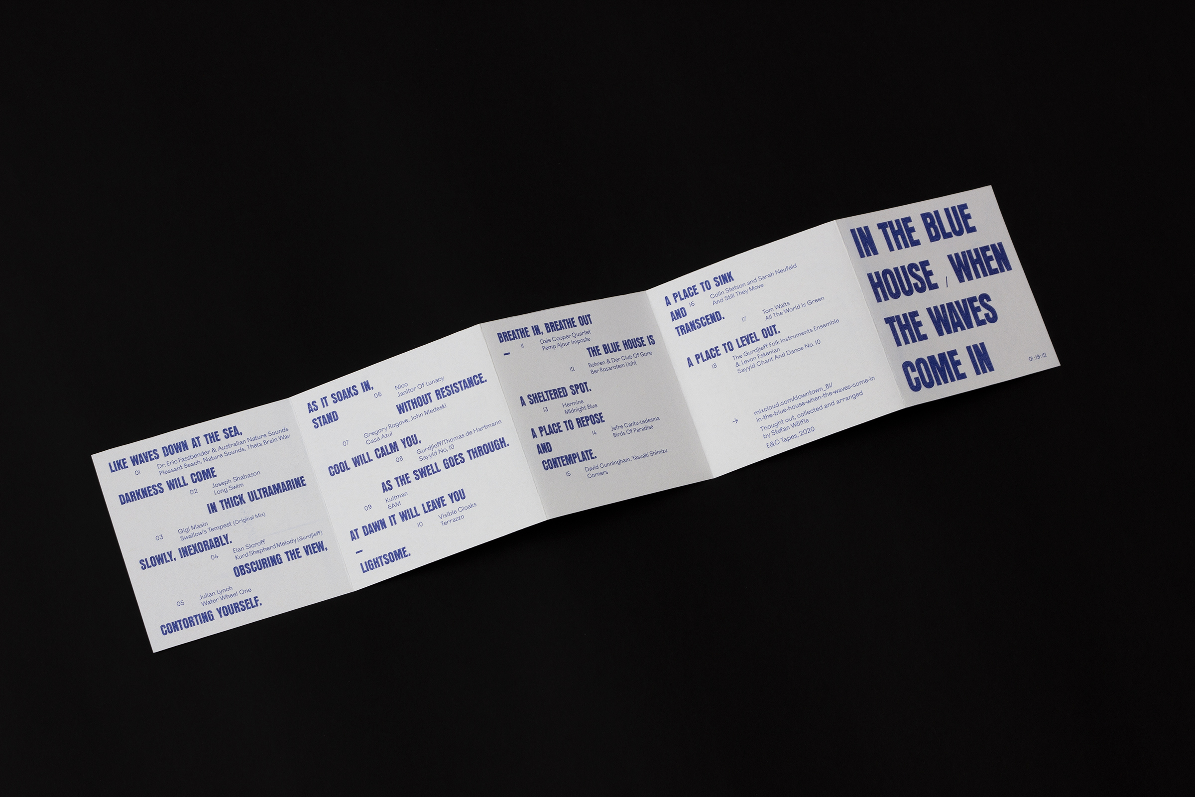 A contemplative mixtape providing a meditation about fear and melancholia and there wave-like nature. The little Leporello forms an haptic counterweight for the digital mixtape.